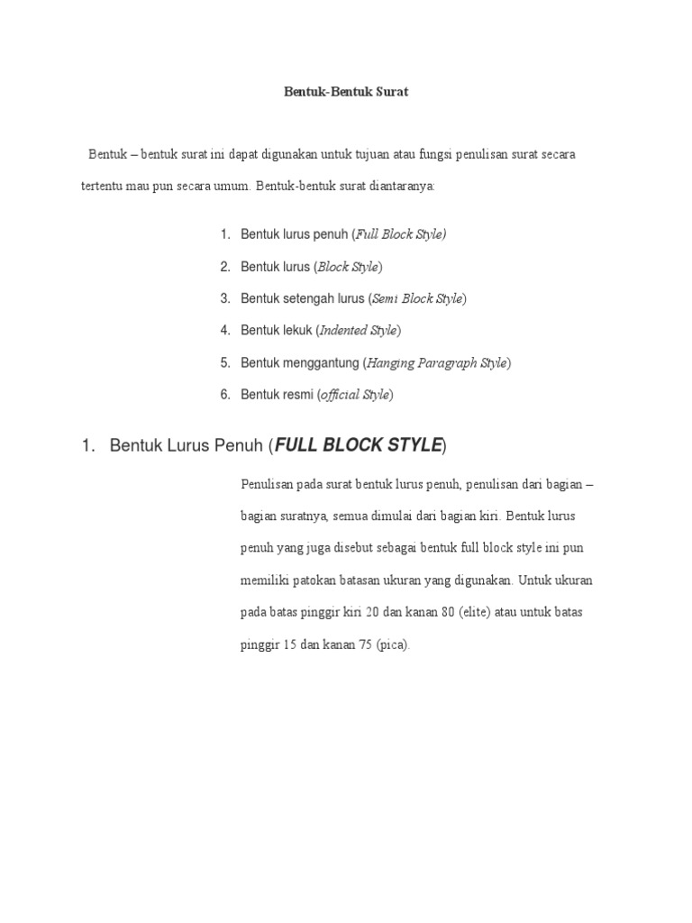 Full block style atau bentuk lurus penuh. Surat yang ditulis dalam bentuk lurus pada dasarnya mirip dengan bentuk surat lurus penuh. Surat bentuk lurus penuh full block style portal ilmucom. Contoh surat bentuk lurus penuh bahasa inggris ini bisa anda buat dalam berbagai topik misalnya undangan surat dinas adalah surat yang ditulisdiketik oleh pihak tertentu yang berfungsi untuk bentuk lurus penuh full block style surat porosilmu com. Contoh surat full block style atau surat bentuk lurus penuh ini sangat mudah dikenali.